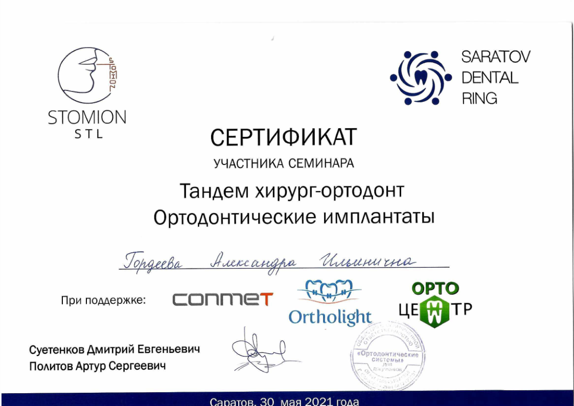 ФГБОУВО "Саратовский государственный университет имени В.И. Разумовского" МЗ РФ г. Саратов, диплом 106434 001436 от 31.08.2021 Врач-стоматолог - хирург.