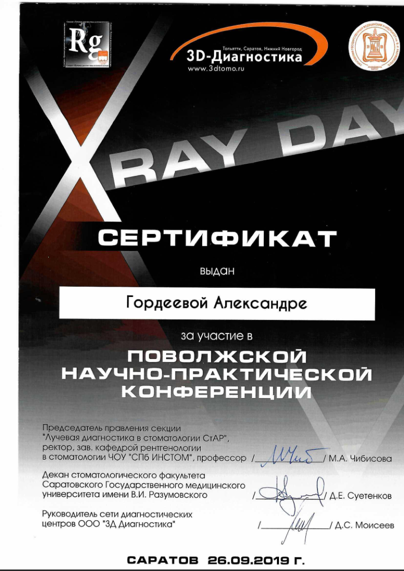 ФГБОУВО "Саратовский государственный университет имени В.И. Разумовского" МЗ РФ г. Саратов, диплом 106404 0026202 от 31.05.2019 Врач-стоматолог.