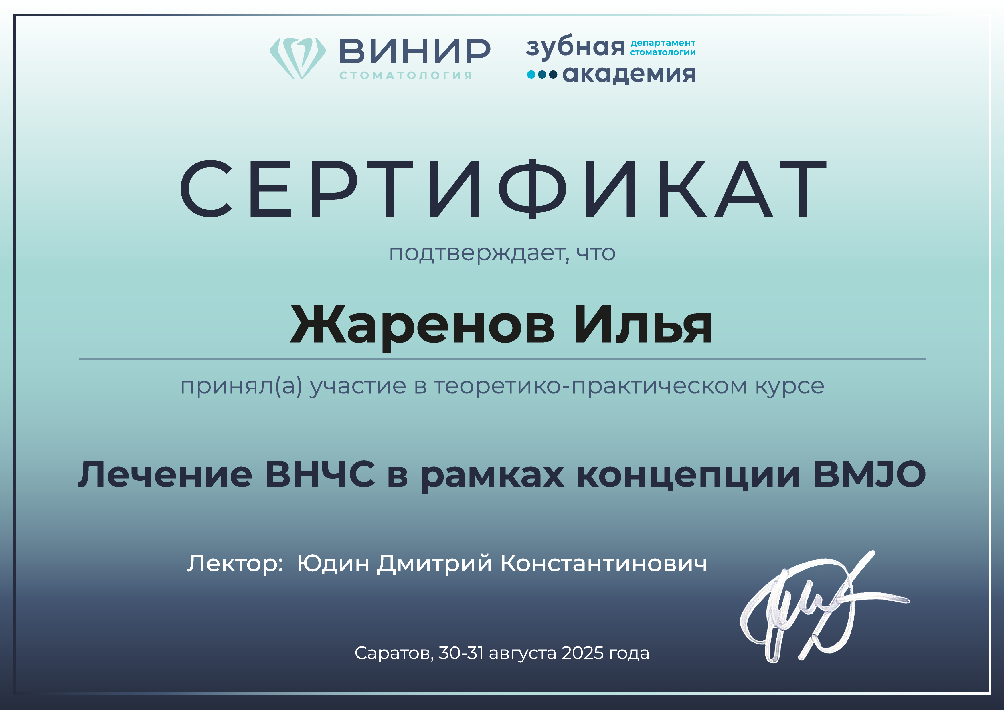 - сертификат стоматология ортопедическая профессиональная переподготовка № 772413077943 выдан 21.12.2020